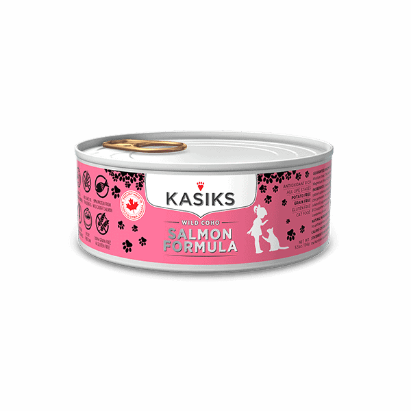 KASIKS Salmon formula proudly uses wild caught, boneless/skinless salmon from sustainable Pacific Ocean fisheries. This product can be fed along side one of our dry options or on its own as a complete and balanced formula.